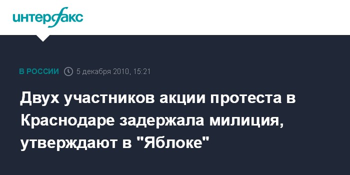 Двух участников акции протеста в Краснодаре задержала милиция, утверждают в "Яблоке"
