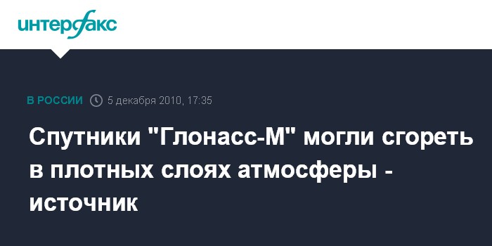 Спутники "Глонасс-М" могли сгореть в плотных слоях атмосферы - источник