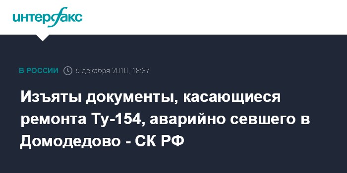 Изъяты документы, касающиеся ремонта Ту-154, аварийно севшего в Домодедово - СК РФ