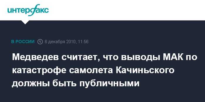 Медведев считает, что выводы МАК по катастрофе самолета Качиньского должны быть публичными
