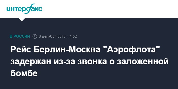 Рейс Берлин-Москва "Аэрофлота" задержан из-за звонка о заложенной бомбе