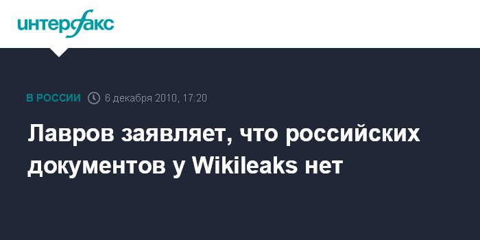 Отвечая на вопрос, не опасается ли глава МИД, что гласности могут быть преданы документы, касающиеся российских дипломатов, Лавров заверил: "Наших документов нет".