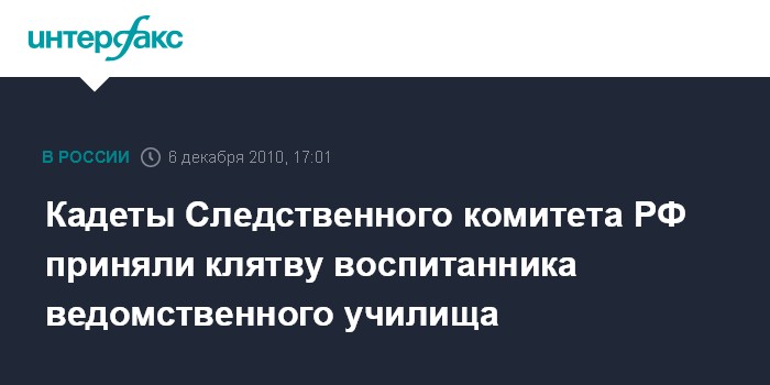 "Сегодня, 6 декабря 2010 года, в актовом зале Следственного комитета прошла торжественная церемония принятия клятвы воспитанниками кадетского класса", - сказал сотрудник пресс-службы ведомства "Интерфаксу" в понедельник.