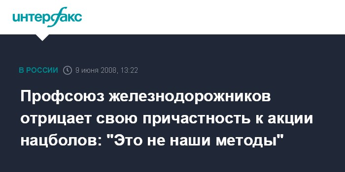 Пенза. 9 июня. INTERFAX.RU - Российский профсоюз локомотивных бригад железнодорожников заявляет, что он не имеет отношения к попытке проведения несанкционированной акции национал-большевиков в здании ОАО РЖД.