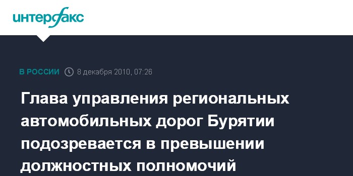 Улан-Удэ. 8 декабря. ИНТЕРФАКС-СИБИРЬ - Отдел по расследованию особо важных дел СУ СКП Бурятии возбудил уголовное дело в отношении руководителя ГУ "Управление региональных автомобильных дорог Республики Бурятия" Евгения Родионова, подозреваемого в превышении должностных полномочий.
