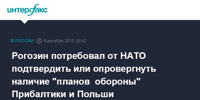 Брюссель. 9 декабря. ИНТЕРФАКС - Постпред России при НАТО Дмитрий Рогозин настаивает на политической реакции альянса в связи с данными о планах обороны Прибалтики и Польши против РФ, которые были распространены ресурсом WikiLeaks и опубликованы в "Гардиан" и других СМИ.