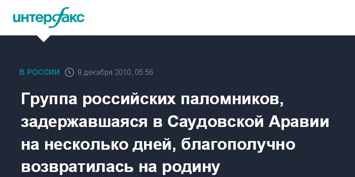 Группа российских паломников, задержавшаяся в Саудовской Аравии на несколько дней, благополучно возвратилась на родину