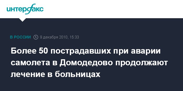 Более 50 пострадавших при аварии самолета в Домодедово продолжают лечение в больницах