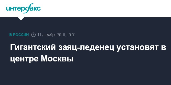 Москва. 11 декабря. INTERFAX.RU - Огромный карамельный заяц весом около 100 кг будет установлен в центре столицы на площади Революции в субботу, сообщили "Интерфаксу" в пресс-службе префектуры Центрального административного округа Москвы. "На площади с 13:00 Дед Мороз и Снегурочка специальными молоточками будут отбивать кусочки леденца и угощать всех желающих", - рассказали в префектуре.