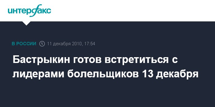 Москва. 11 декабря. INTERFAX.RU - Глава СК РФ Александр Бастрыкин готов встретиться с лидерами фанатского движения, чтобы рассказать о ходе расследования убийства болельщика "Спартака" Егора Свиридова, сообщил "Интерфаксу" официальный представитель СК РФ Владимир Маркин в субботу. "В понедельник в офисе СК РФ в Техническом переулке в 10:00 А.Бастрыкин намерен встретиться с представителями фанатских объединений, чтобы рассказать им о ходе расследования убийства Е.Свиридова", - сказал В.Маркин.