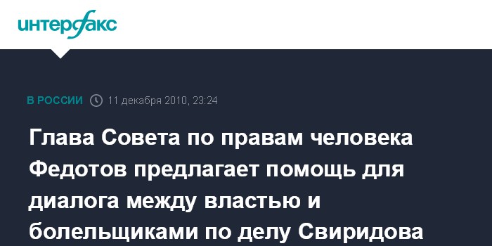 Глава Совета по правам человека Федотов предлагает помощь для диалога между властью и болельщиками по делу Свиридова