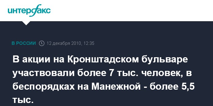 В акции на Кронштадском бульваре участвовали более 7 тыс. человек, в беспорядках на Манежной - более 5,5 тыс.