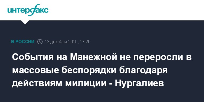 События на Манежной не переросли в массовые беспорядки благодаря действиям милиции - Нургалиев