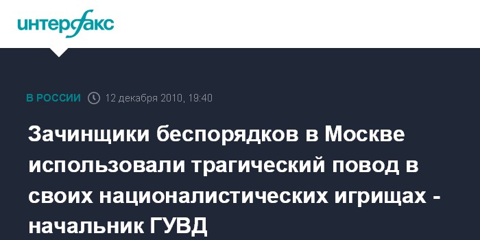 Зачинщики беспорядков в Москве использовали трагический повод в своих националистических игрищах - начальник ГУВД