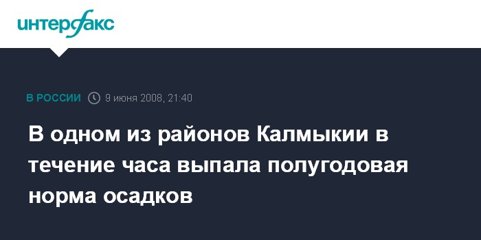 Ростов-на-Дону. 9 июня. ИНТЕРФАКС-ЮГ - Непривычно сильный ливень продолжался в течение часа на территории Логанского района (Калмыкия). За это время выпала полугодовая норма дождевых осадков, сообщили агентству "Интерфакс-Юг" в пресс-службе Южного регионального центра МЧС России.