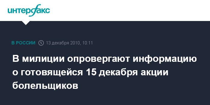 В милиции опровергают информацию о готовящейся 15 декабря акции болельщиков