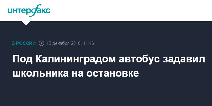 Калининград. 13 декабря. INTERFAX.RU - Под Калининградом подросток погиб под колесами автобуса прямо на остановке, сообщили "Интерфаксу" в понедельник региональном ГИБДД.