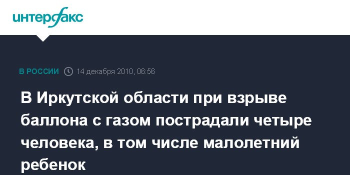 В Иркутской области при взрыве баллона с газом пострадали четыре человека, в том числе малолетний ребенок