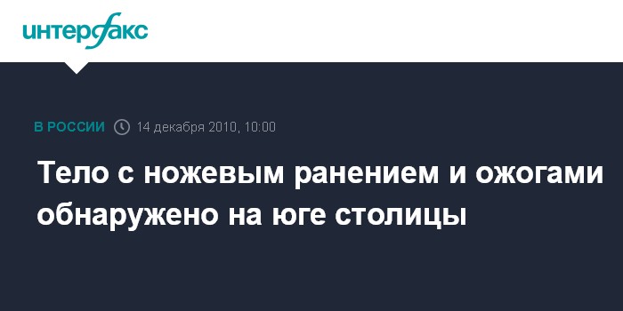 Москва. 14 декабря. INTERFAX.RU - На юге столицы обнаружено тело неизвестного мужчины азиатской внешности с ожогами ног и с ножевым ранением, сообщил "Интерфаксу" источник в правоохранительных органах города.