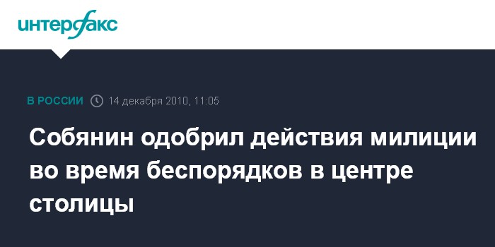 Москва. 14 декабря. INTERFAX.RU - Мэр Москвы Сергей Собянин считает правильными действия сотрудников милиции во время беспорядков на Манежной площади в минувшую субботу.