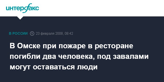 "В 5:22 мск в Омске в Кировском районе на улице 10-я Солнечная, д. 21 произошел пожар в ресторане "Золотая скала". Спасателями обнаружены тела двух погибших. Из здания удалось эвакуировать десять человек", - сказал В.Бельцов.
