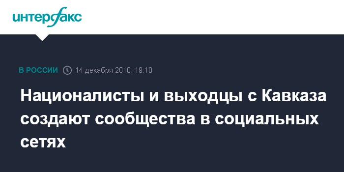 Москва. 14 декабря. INTERFAX.RU - Противостояние выходцев с Кавказа с националистами нашло отражение в Интернете, в основном, в социальных сетях.
