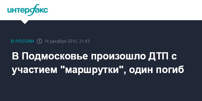 Москва. 14 декабря. INTERFAX.RU - Один человек погиб, еще семь получили ранения в ДТП с участием маршрутного такси в Подмосковье, сообщил "Интерфаксу" источник в правоохранительных органах города.