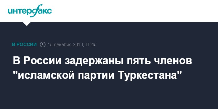 "Помимо этого в период с октября по декабрь в Московской, Свердловской и Волгоградской областях было задержано еще четверо активных участников "Исламской партии Туркестана", находившихся в международном розыске за терроризм, бандитизм, участие в преступном сообществе, торговлю людьми и похищение человека", - сказал представитель ДПЭ.