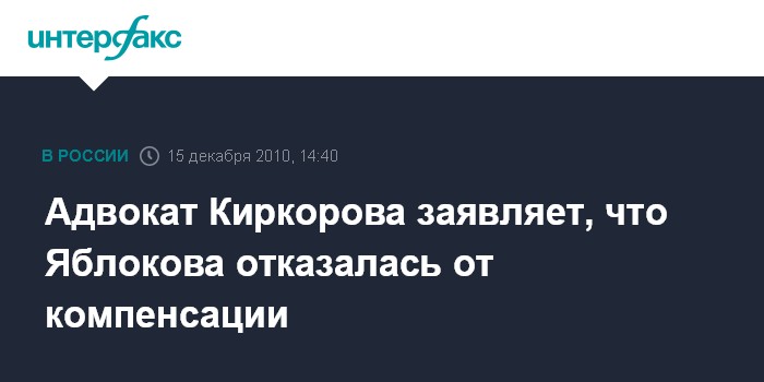 Адвокат Киркорова заявляет, что Яблокова отказалась от компенсации