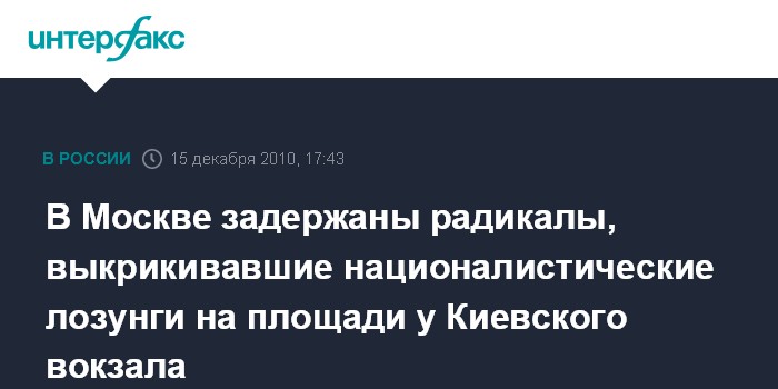 Перед этим группа националистически настроенной молодежи на площади у ТЦ "Европейский" начала выкрикивать лозунги националистического содержания. Как передает корреспондент "Интерфакса", они кричали "Россия для русских", "Москва для москвичей".