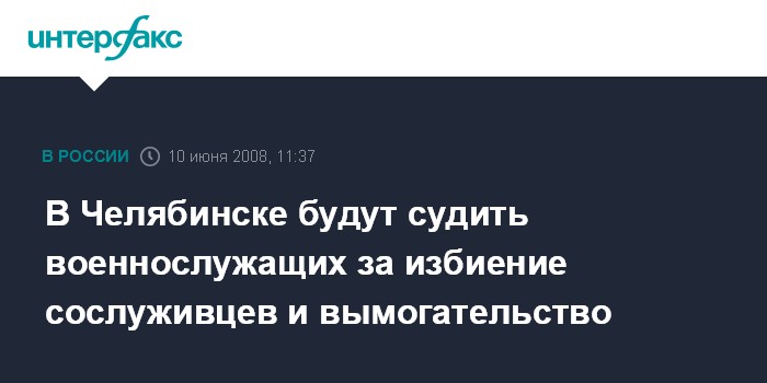 Москва. 10 июня. INTERFAX.RU - В Челябинский гарнизонный суд 11 июня будет направлено уголовное дело в отношении трех военнослужащих-контрактников воинской части города Карабаш (Челябинская область), которые обвиняются в вымогательстве и избиении подчиненных.