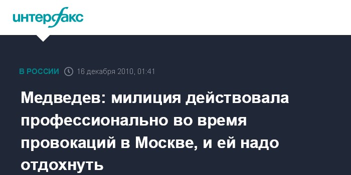 Медведев: милиция действовала профессионально во время провокаций в Москве, и ей надо отдохнуть