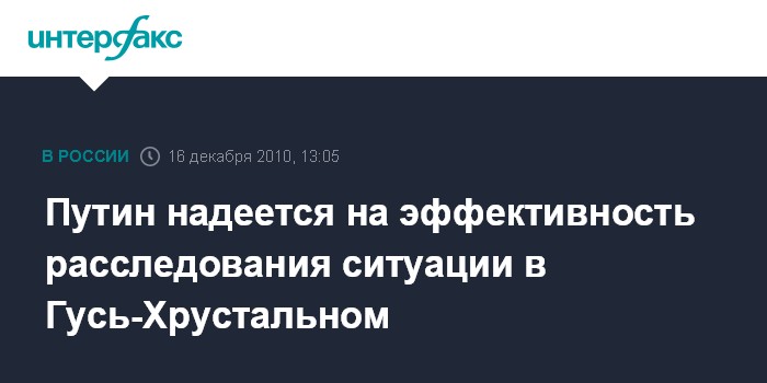 Москва. 16 декабря. INTERFAX.RU - Премьер-министр РФ Владимир Путин надеется, что расследование ситуации в Гусь-Хрустальном будет доведено до суда и до обвинительных приговоров.