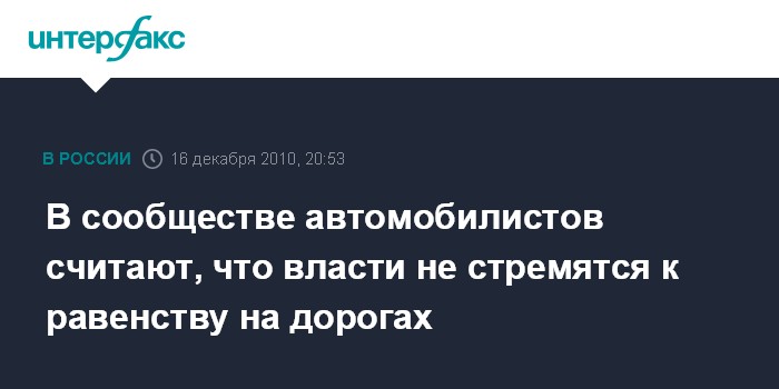 Москва. 16 декабря. INTERFAX.RU - Сообщества автомобилистов солидарны во мнении, что неравенство прав в движении на российских дорогах сохранится, пока существуют привилегии в виде проблесковых маячков на машинах чиновников.