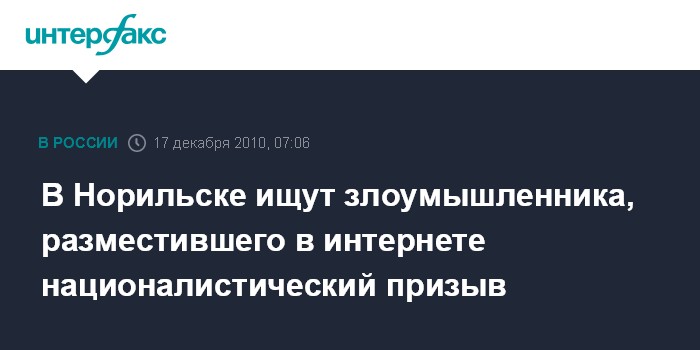 В Норильске ищут злоумышленника, разместившего в интернете националистический призыв