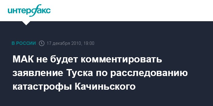 Москва. 17 декабря. INTERFAX.RU - Межгосударственный авиационный комитет (МАК) оставит без комментариев заявление премьер-министра Польши Дональда Туска по поводу отчета МАК, переданного Варшаве, о расследовании катастрофы президента Польши Леха Качиньского.