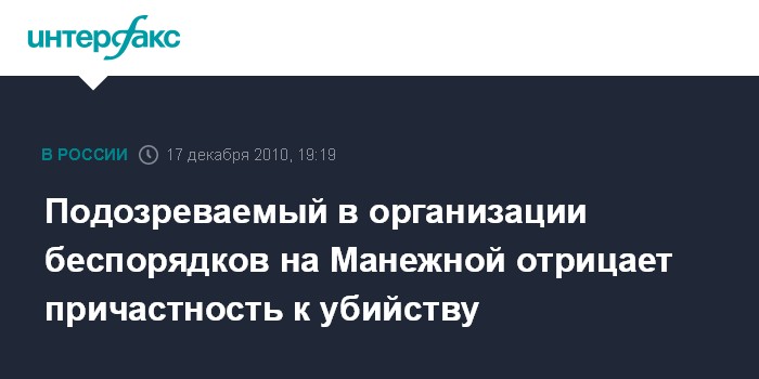 Москва. 17 декабря. INTERFAX.RU - Один из предполагаемых организаторов беспорядков на Манежной площади 11 декабря Илья Кубраков, также подозреваемый в убийстве на следующий день гражданина Киргизии, частично признал свою вину в суде.