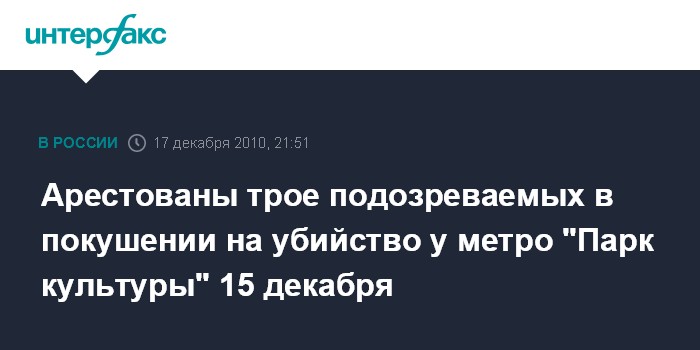 Арестованы трое подозреваемых в покушении на убийство у метро "Парк культуры" 15 декабря
