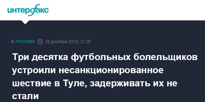 Руководитель пресс-службы УВД региона Андрей Ярцев сообщил "Интерфаксу", что фанаты договорились об акции в социальных сетях. Подростки собрались возле стадиона "Буревестник", затем, держа в руках атрибутику футбольных клубов, двинулись в центр Тулы к автовокзалу.