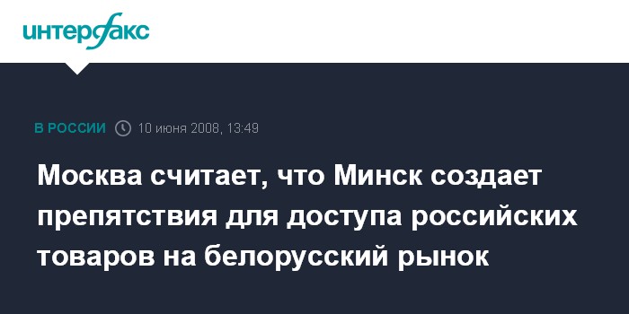 Минск. 10 июня. INTERFAX.RU - Минэкономразвития РФ направило в адрес МИД Белоруссии ноту, где приводится список мер, которые, по мнению Москвы, препятствуют доступу отечественных товаров на белорусский рынок.