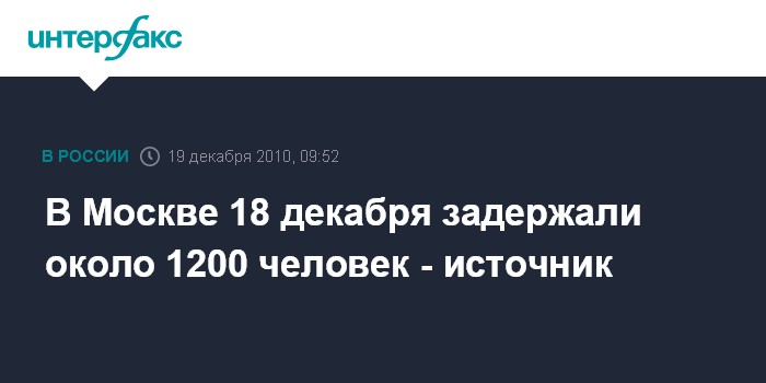 Москва. 19 декабря. ИНТЕРФАКС - Более тысячи человек были задержаны в Москве в субботу в целях пресечения несогласованных акций, сообщил "Интерфаксу" в воскресенье источник в правоохранительных органах.