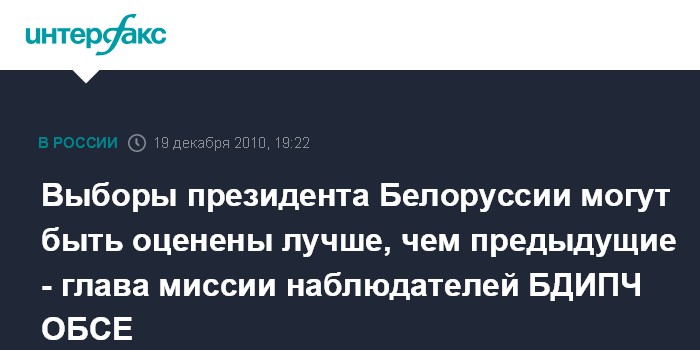 Выборы президента Белоруссии могут быть оценены лучше, чем предыдущие - глава миссии наблюдателей БДИПЧ ОБСЕ