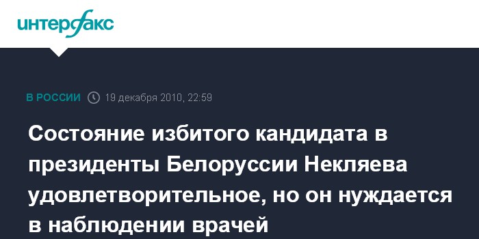 Состояние избитого кандидата в президенты Белоруссии Некляева удовлетворительное, но он нуждается в наблюдении врачей