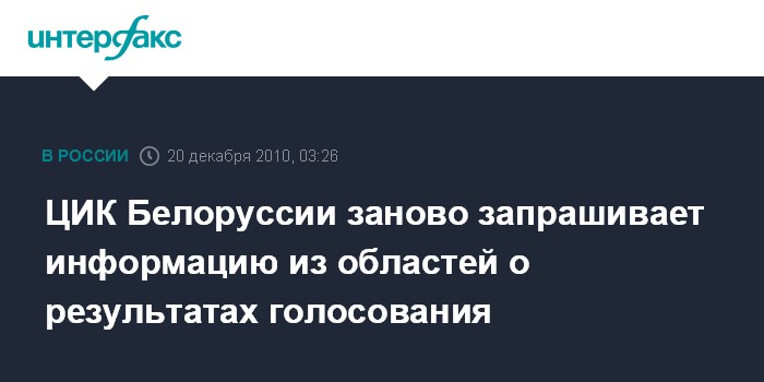 Минск. 20 декабря. ИНТЕРФАКС-ЗАПАД - Из-за отключения электроэнергии в здании Центризбиркома Белоруссии некоторые данные о результатах голосования приходится восстанавливать, заявил агентству "Интерфакс-Запад" секретарь ЦИК Николай Лозовик.