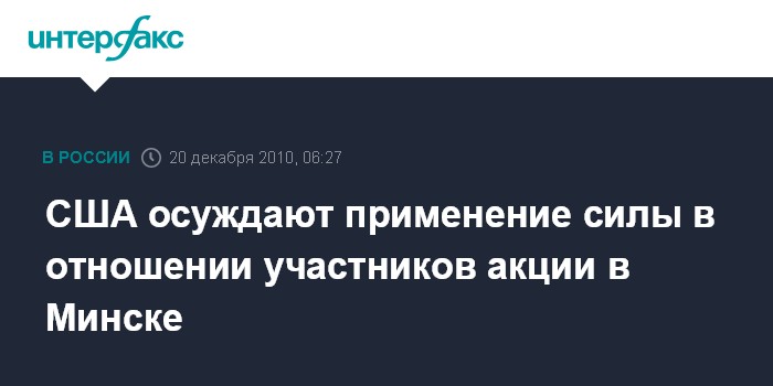 Минск. 20 декабря. ИНТЕРФАКС-ЗАПАД - Соединенные Штаты Америки решительно осуждают насилие, имевшее место в Белоруссии в день выборов, говорится в заявлении посольства США в Минске, размещенном на сайте дипмиссии.