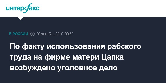 По факту использования рабского труда на фирме матери Цапка возбуждено уголовное дело