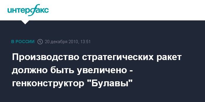 Производство стратегических ракет должно быть увеличено - генконструктор "Булавы"