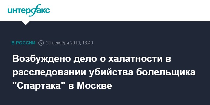 Возбуждено дело о халатности в расследовании убийства болельщика "Спартака" в Москве