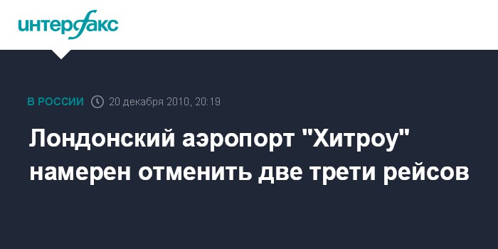 Лондон. 20 декабря. INTERFAX.RU - Руководство крупнейшего в Великобритании аэропорта "Хитроу" согласовало сокращения полетов, вызванных мощными снегопадами, говорится в заявлении, опубликованном на сайте аэропорта.
