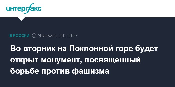 Во вторник на Поклонной горе будет открыт монумент, посвященный борьбе против фашизма